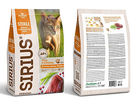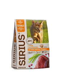 SIRIUS — сухой корм премиум класса для полноценного ежедневного рациона стерилизованных кошек. Высокое содержание мясных ингредиентов обеспечивает оптимальный уровень белка и укрепляет мышцы. Пониженное содержание жиров для контроля веса. Баланс витаминов и комплекса пробиотиков 4-го поколения PROSTOR+ нормализует пищеварение и укрепляет иммунитет. Омега 3 и Омега 6 способствуют поддержанию здоровья сердца, мозга, нервной системы, здоровья кожи и красоты шерсти. Корм способствует профилактике мочекаменной болезни.