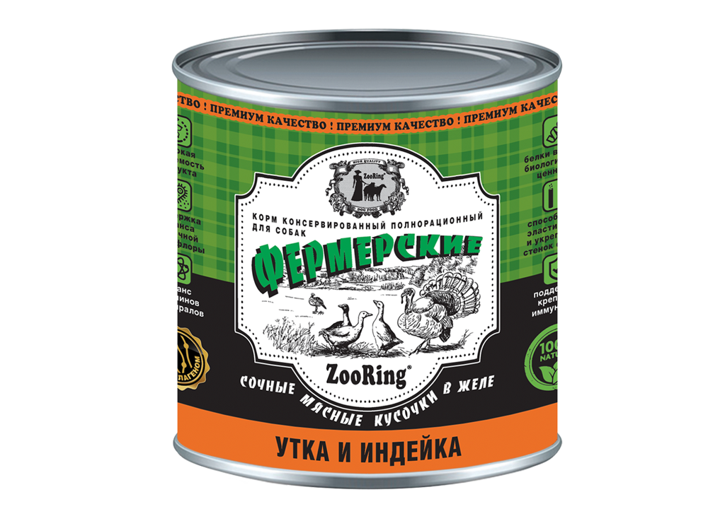 Консервы «Фермерские» премиум качества содержат только натуральные мясные ингредиенты — белки высокой биологической ценности.
