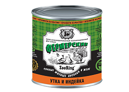 мясо и мясные субпродукты (индейка, утка не менее 4%), вода, витамины и минеральные вещества (A - 2000 ME/кг, D3 - 45 ME/кг, E - 15 мг/кг, витамины группы B, PP, фосфор, кальций, калий, натрий, магний, Zn, Cu, Mn, йод), пищевой коллаген.